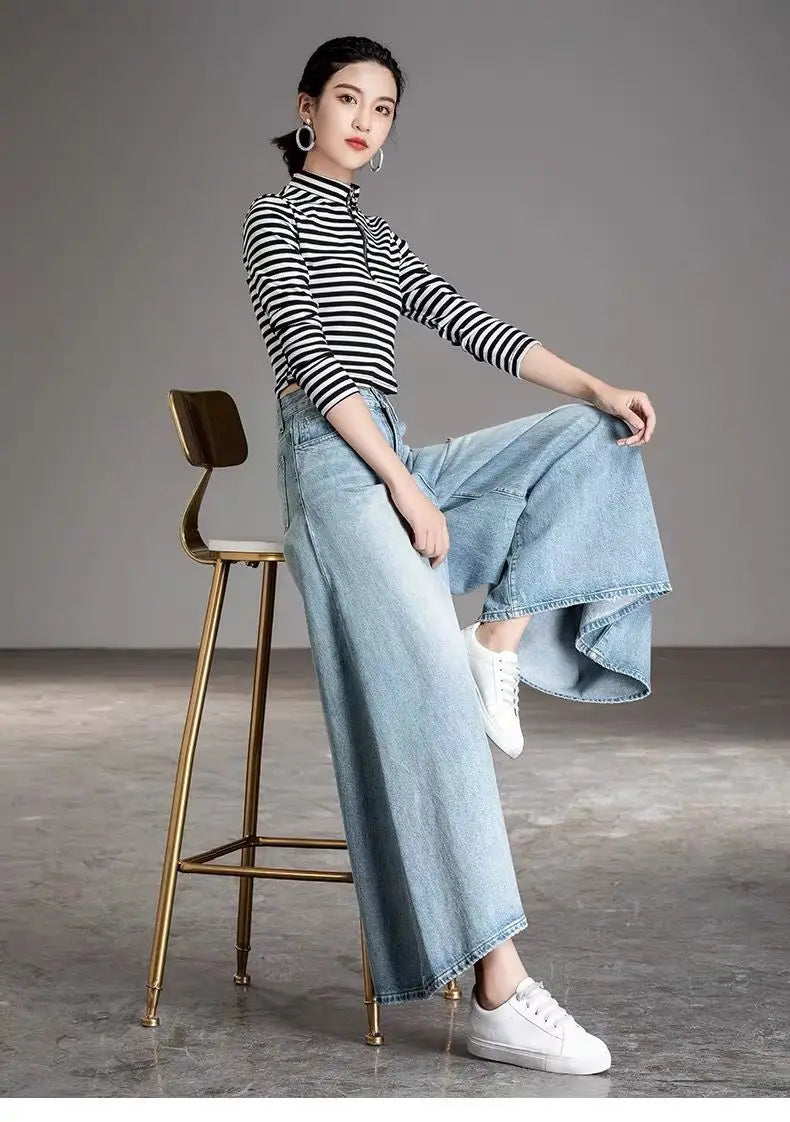 Ljusblå Rock Wide Leg Oversized Jeansbyxor