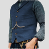 Mörkblå Steampunkväst med Fickkedja Fiskbensmönster