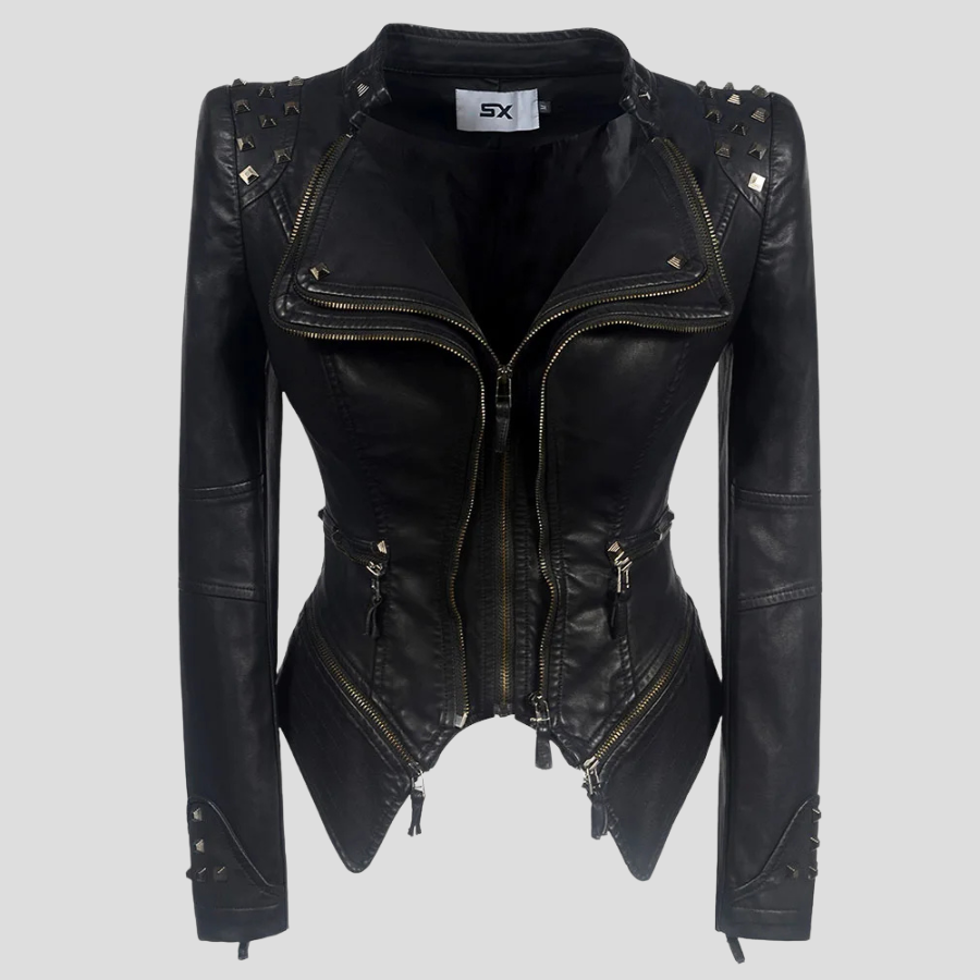 Punk Goth Metal Svart Skinnjacka med Nitar