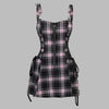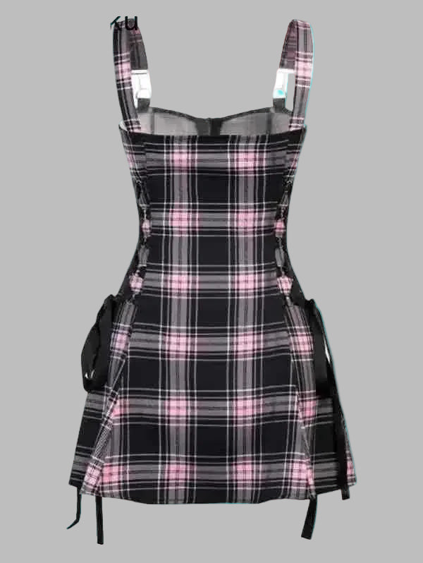 Punk Rosa Rutig Klänning med Hängslen och Band