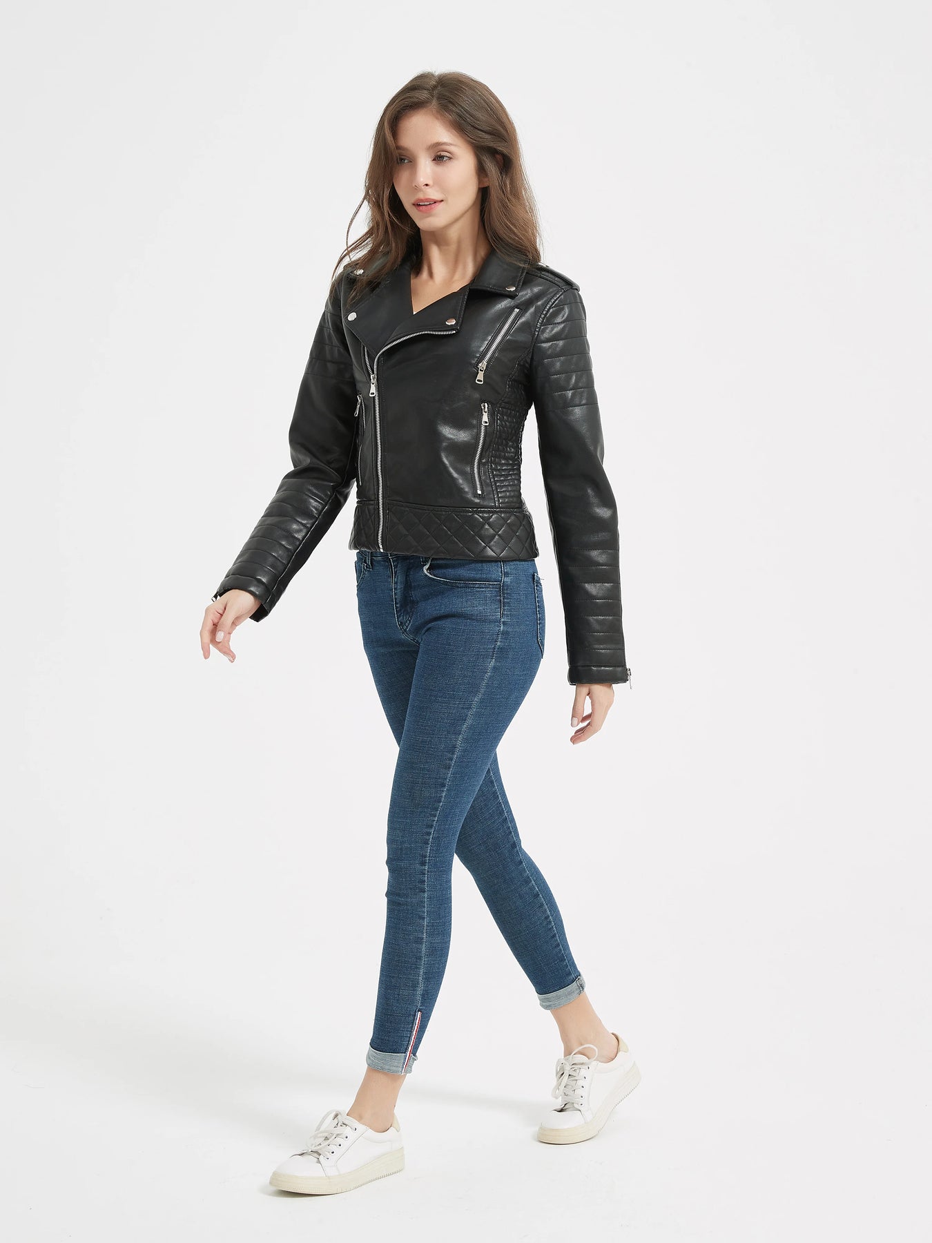 Punk Läderjacka med Kviltade Insatser Visa alternativ