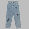 Punk Metal Jeans med Kors Ljusblå