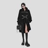 Punkrock Svart Lång Kappa med Bälten och Pälsdetaljer