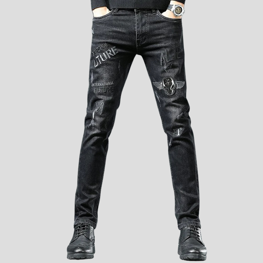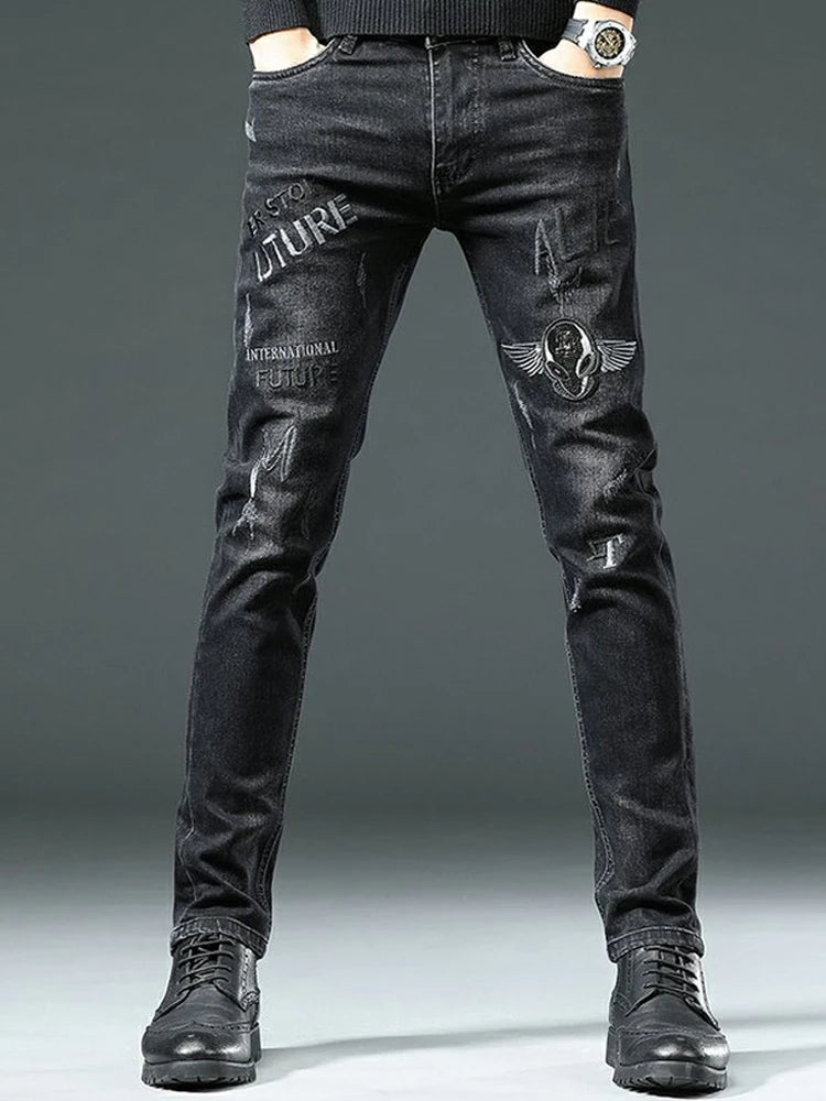 Punk Svarta Jeans med Text och Vingar Visa alternativ