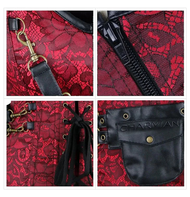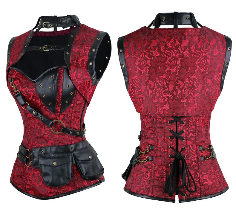 Punkkorsett med Rött Nät och Svarta Dödskallar