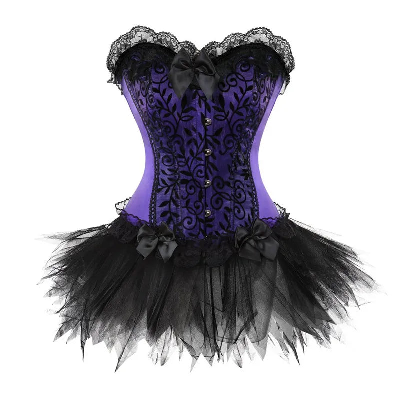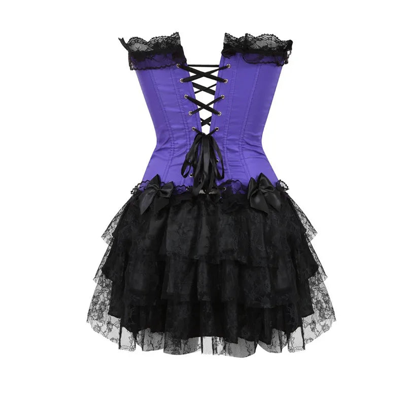 Punkrock Korsett Lila med Spets och Svart Kjol 6XL