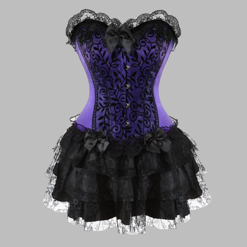 Punkrockkorsett Lila med Spets och Svart Kjol