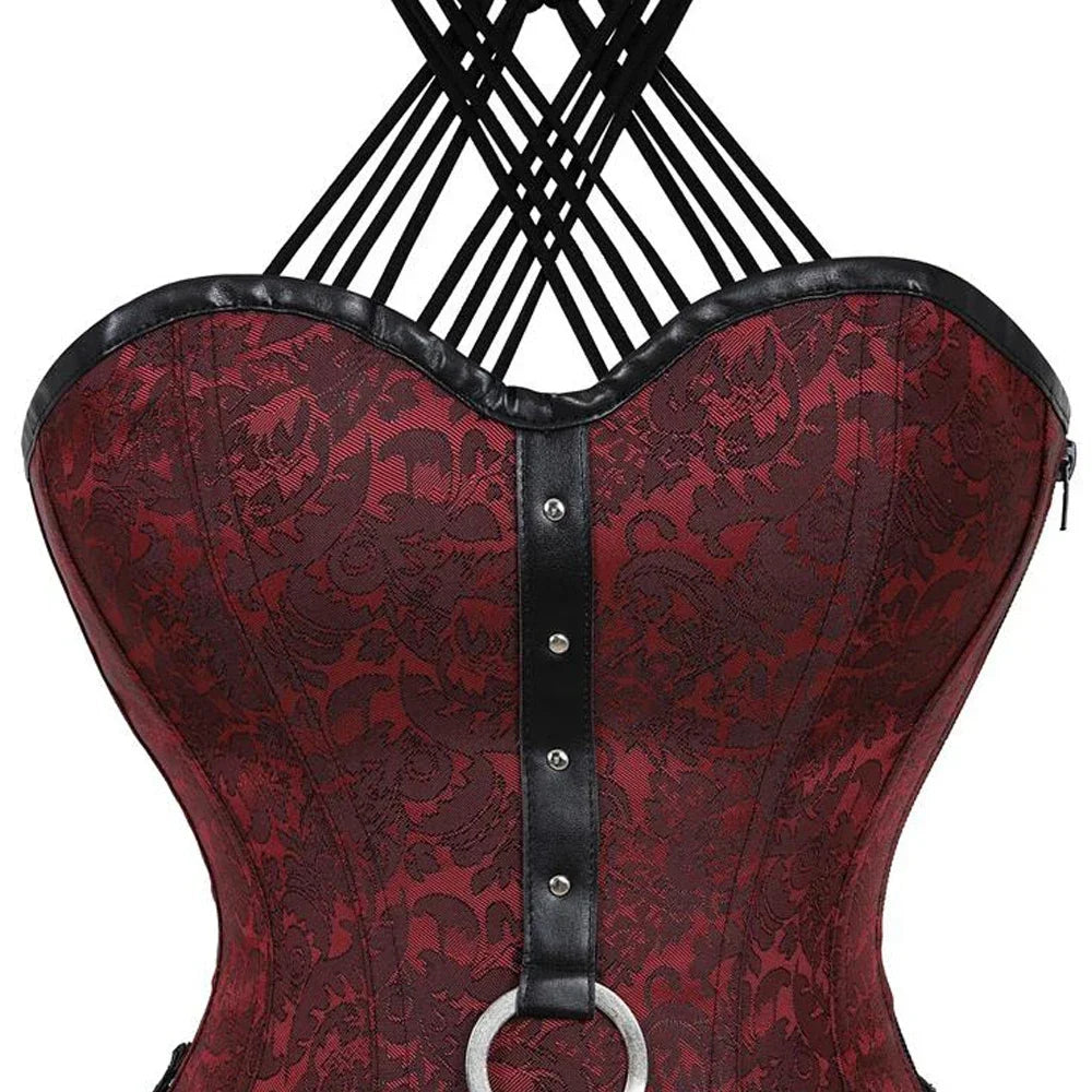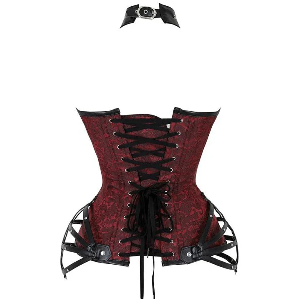 Bordeaux punkrockkorsett med remmar och metallspännen