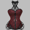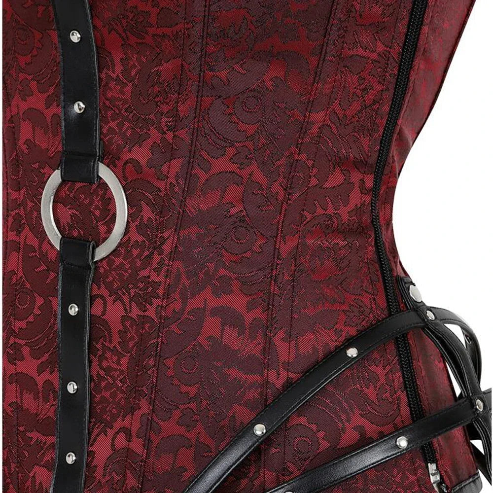 Punkrockkorsett med remmar och metallspännen Vinröd