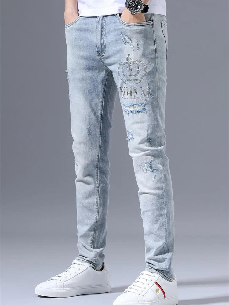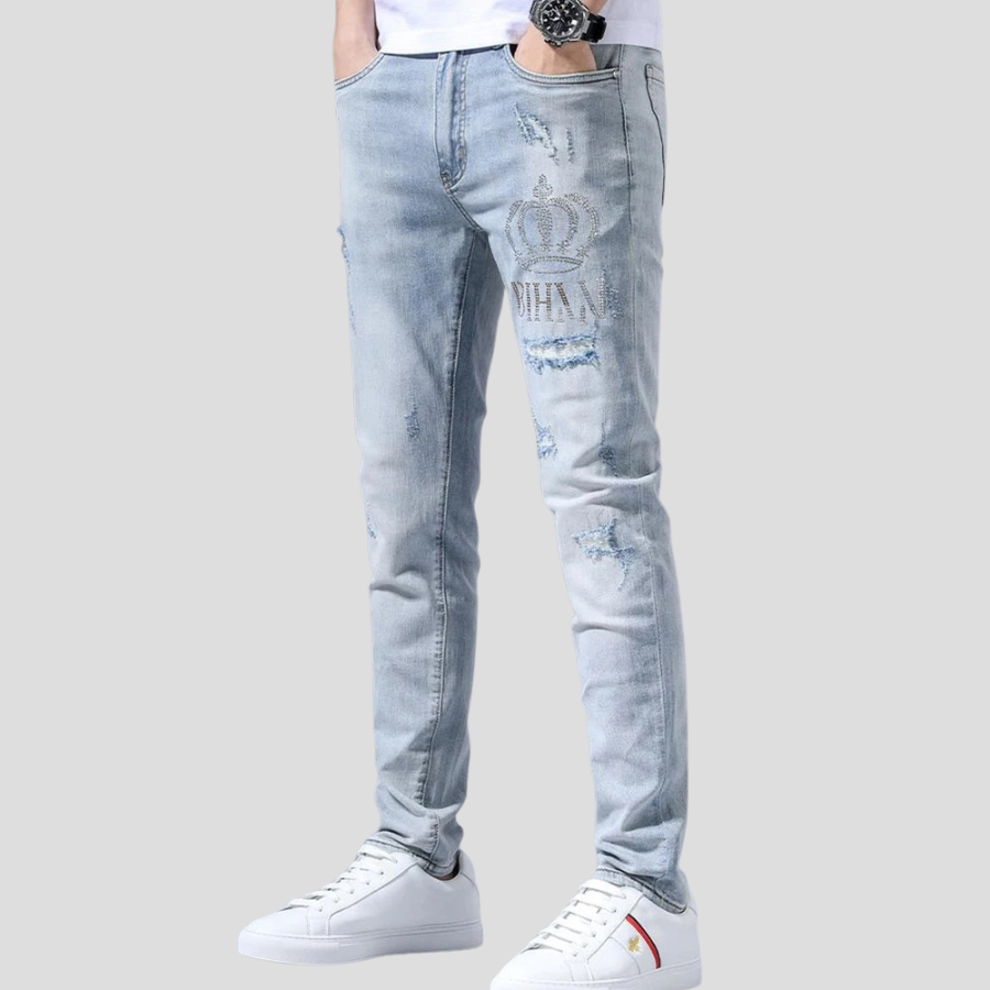 Rock Ljusblå Jeans med Slitningar och Krona 36