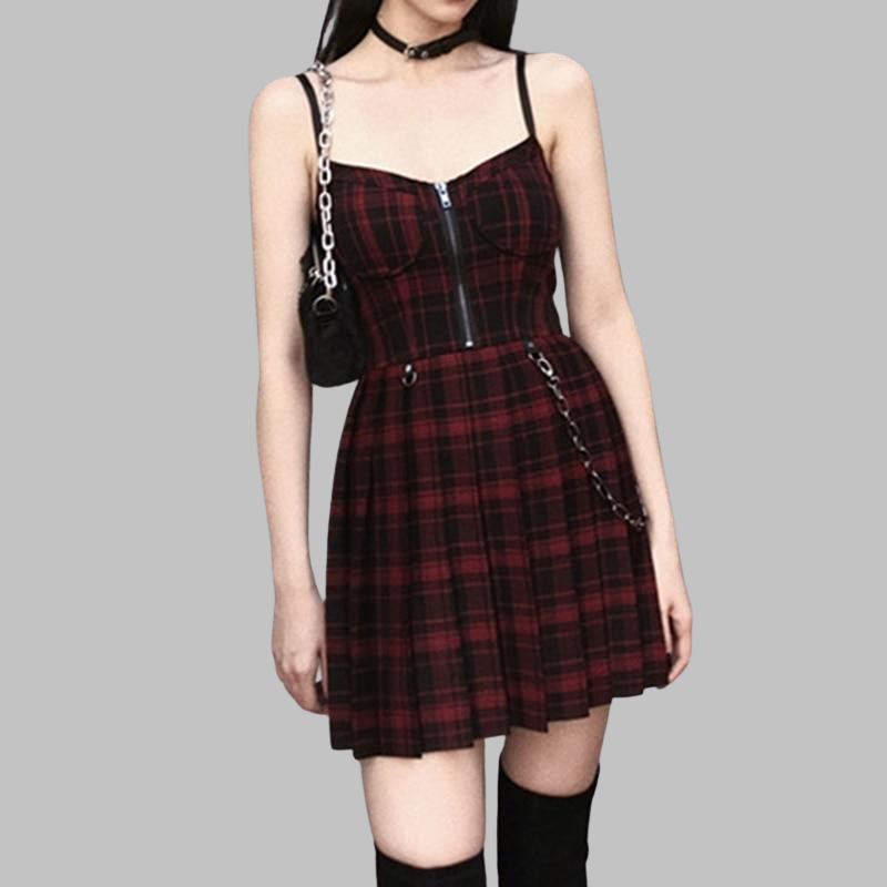 Röd Klänning i Svart Skotskrutigt