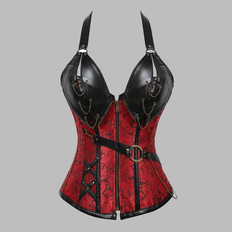 Röd punkkorsett med svarta läderdetaljer Visa alternativ