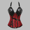 Röd punkkorsett med svarta läderdetaljer 6XL