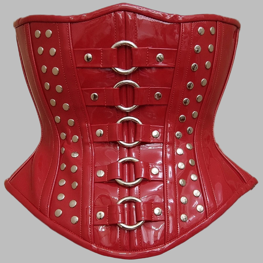 Röd punkrockkorsett med nitar och metalringar 4XL