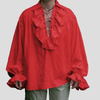 Röd Rock Blus med Knytband och Volanger på Ärmarna