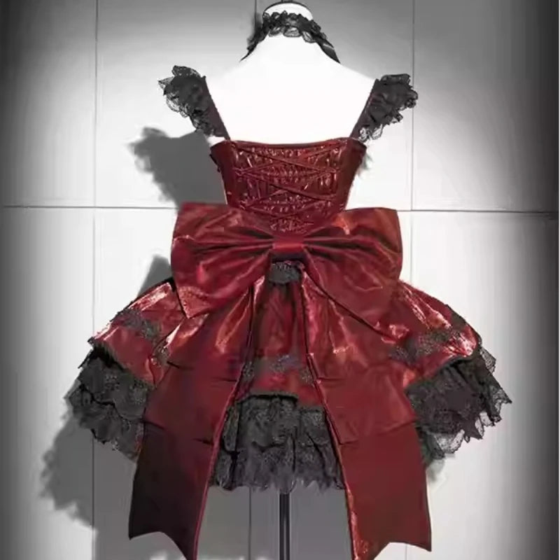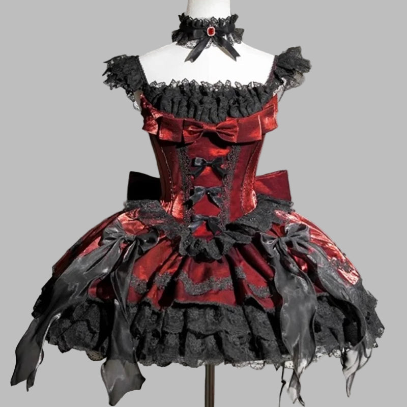 Gotisk Punk Lolita Klänning Röd Svart Spets