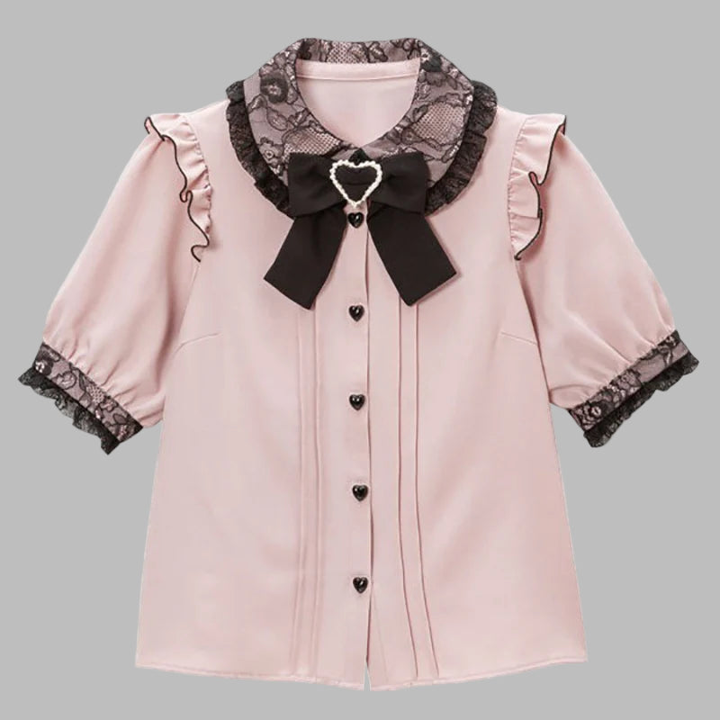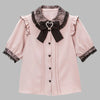 Rosa Gotisk Blus med Svart Spets och Dekorativ Rosett Kawaii Jirai Kei