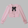 Rosa Jirai Kei Blus med Svart Vintage Rosett Visa alternativ