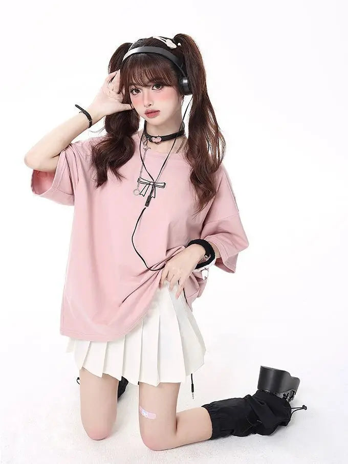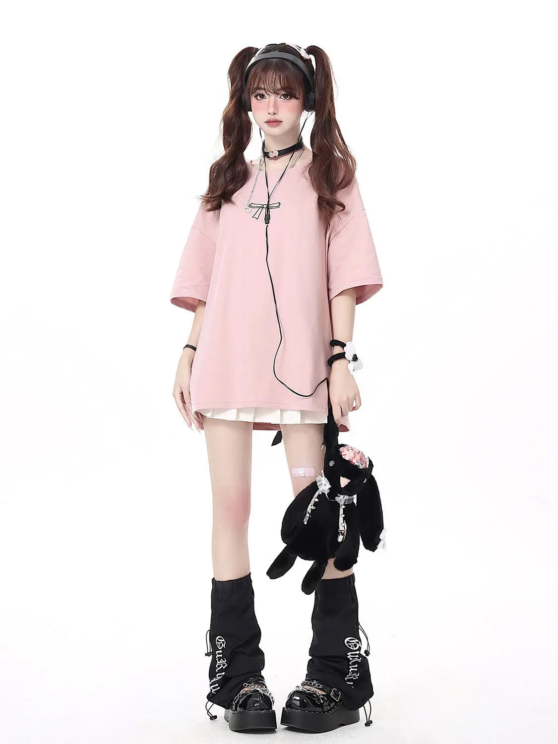 Rosa Jirai Kei-tröja med snörning på ryggen