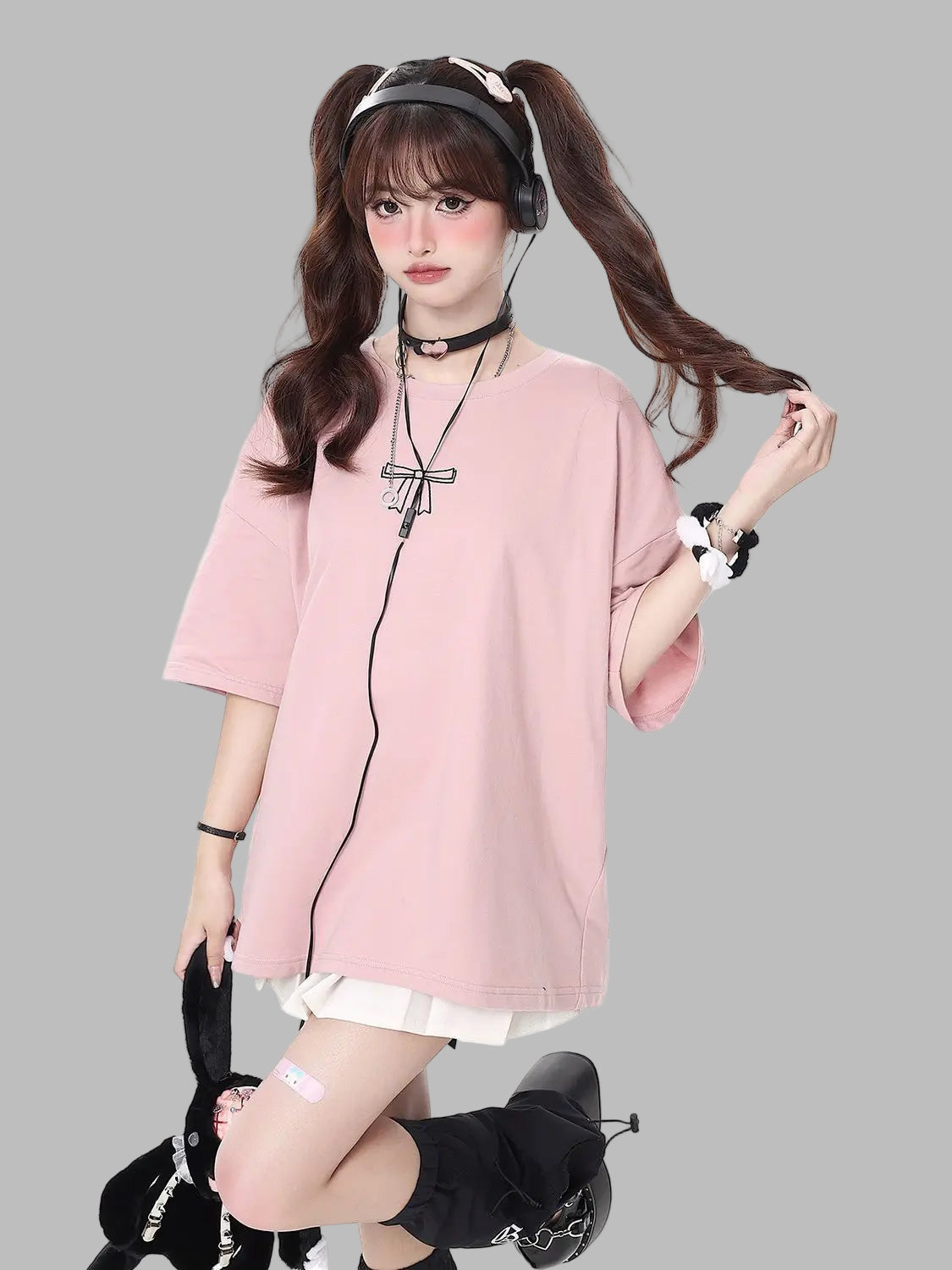 Rosa Jirai Kei-tröja med snörning i ryggen