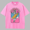 Rosa Oversize T-shirt med Rockig Skelettsurfare