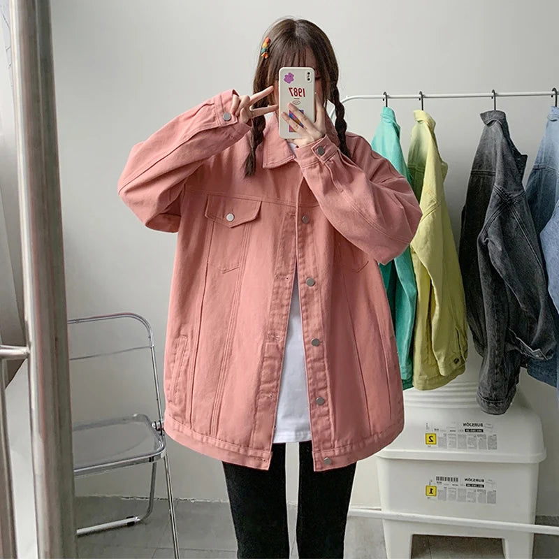 Rosa Oversize Vintage Punk Rock Jeansjacka