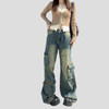 Slitna Cargo Rock Jeans med Vintage Gröna Fickor