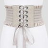 Gorset Steampunk Beżowy Skórzany Pas z Elastycznymi Wstawkami i Sznurowaniem