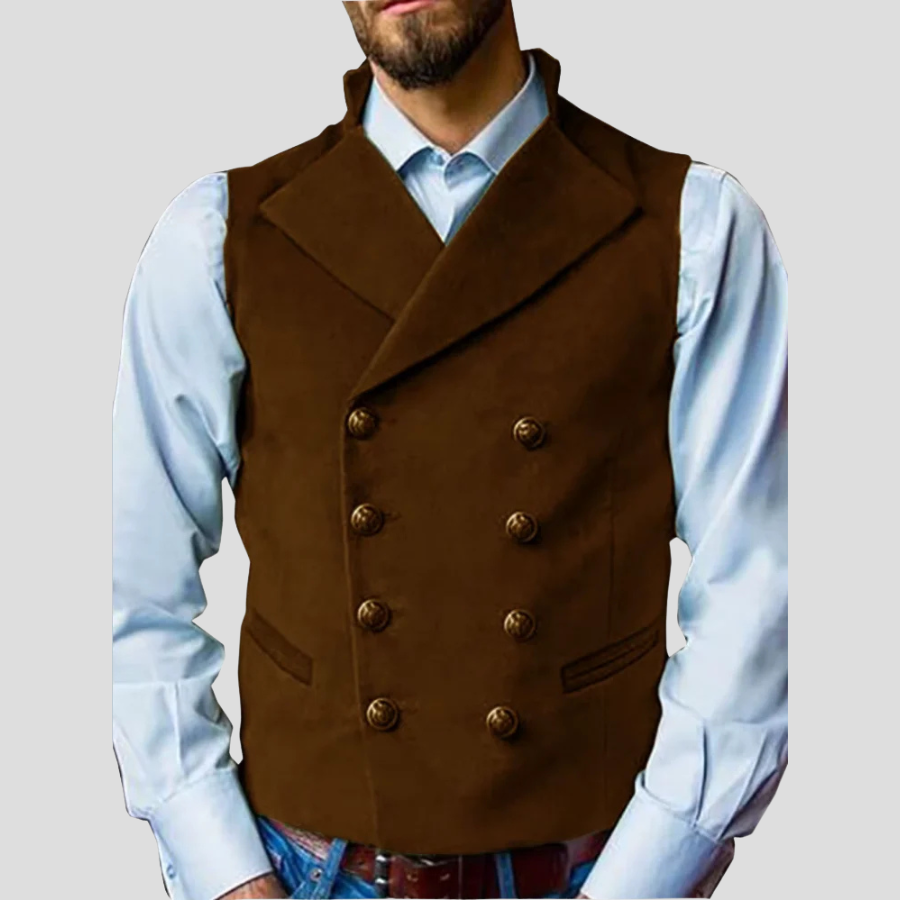 Steampunk Kamizelka Dwurzędowa z Guzikami Brązowa Klasyczna