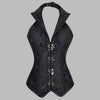 Steampunk gotisk korsett med hög krage och metallspännen svart
