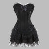 Steampunk gotisk korsett svart med rosetter och spetsvolang
