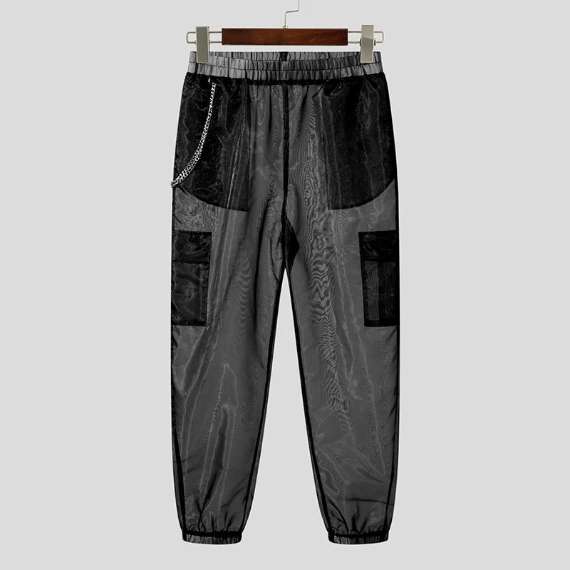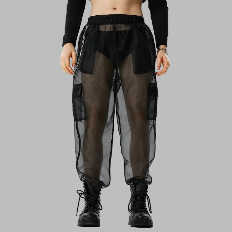 Steampunk Grå Cargo Byxor med Nät Urban Visa alternativ