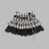 Steampunk Grunge Rutig Kjol med Spetsvolang