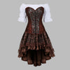Steampunk Klänning Brun med Broderad Korsett och Puffärmar