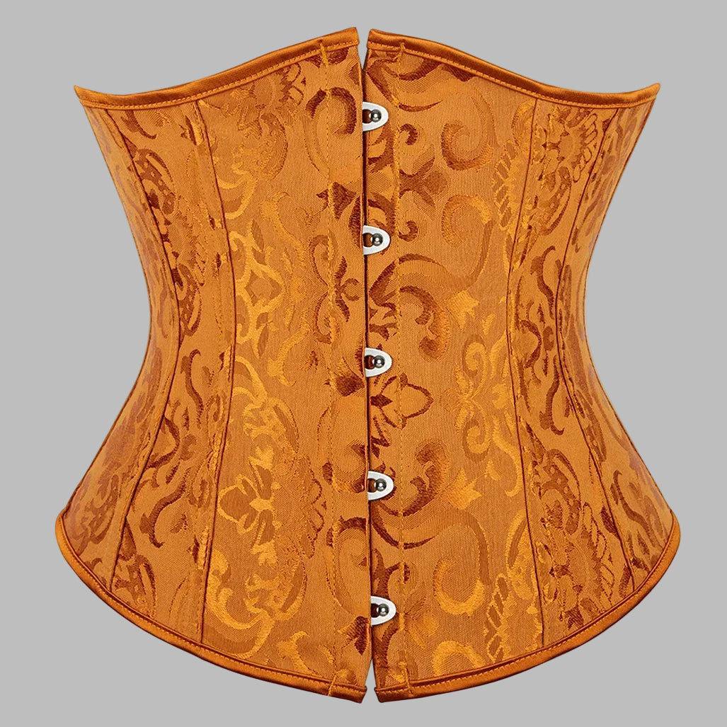 Steampunk Korsett Orange med Präglat Vintage Mönster