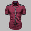 Steampunk Skjorta med Läderremmar Vinröd Kort Ärm 3XL
