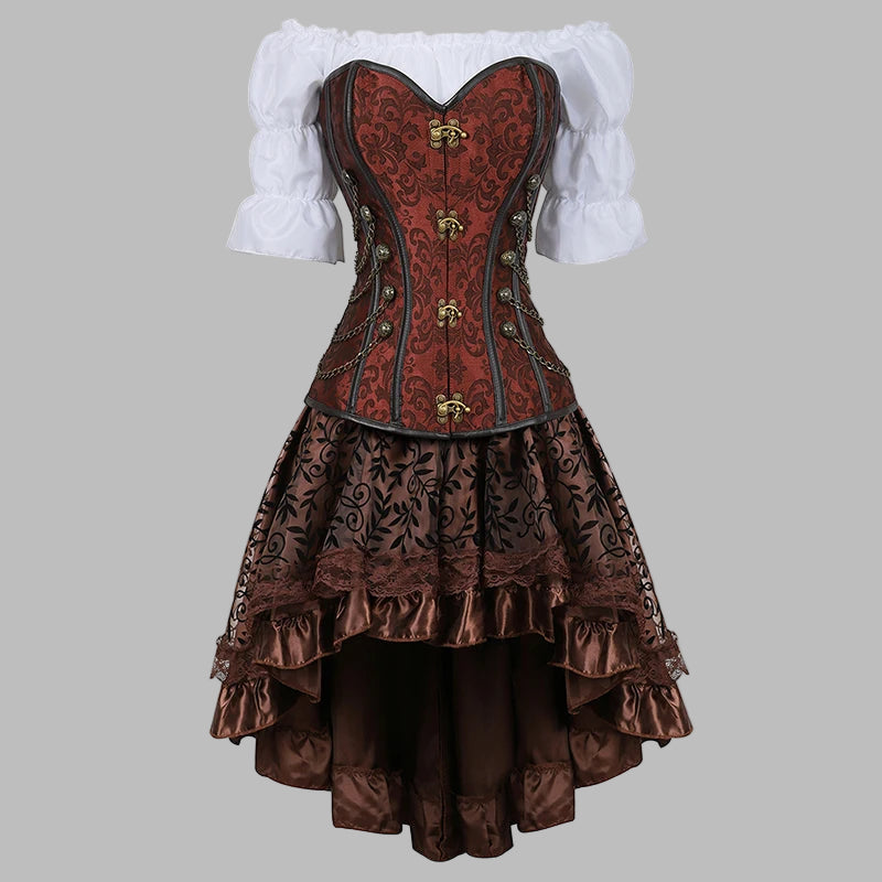 Steampunkklänning med Röd Korsett och Volangkjol 6XL