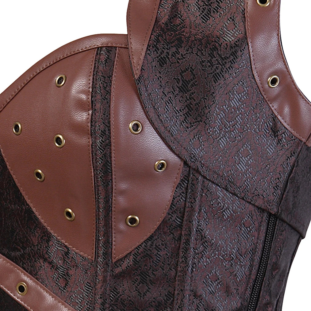 Steampunkkorsett i brunt läder med dekorativa remmar 6XL