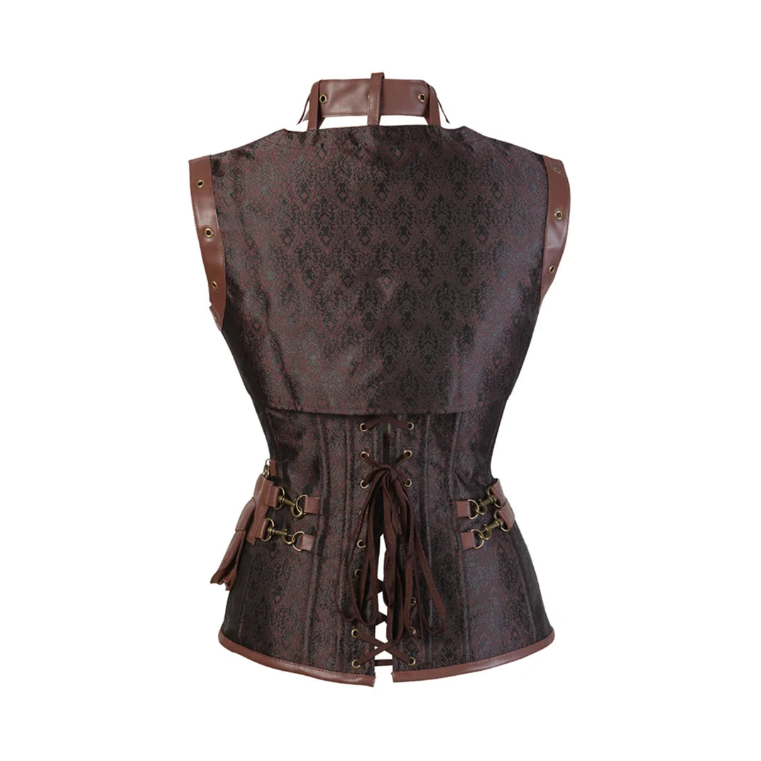 Steampunkkorsett i brunt läder med dekorativa remmar