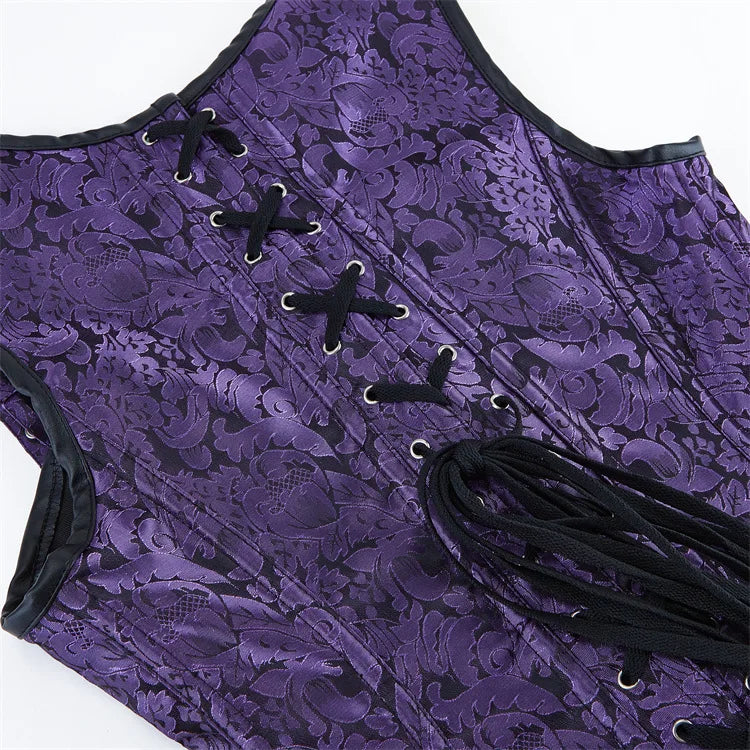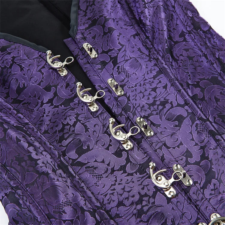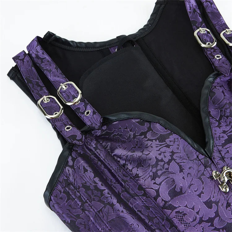 Steampunk Korsett med Metallspännen och Axelband Lila 1XL