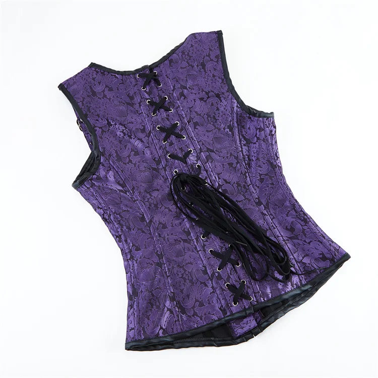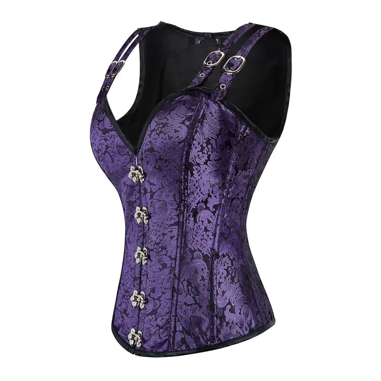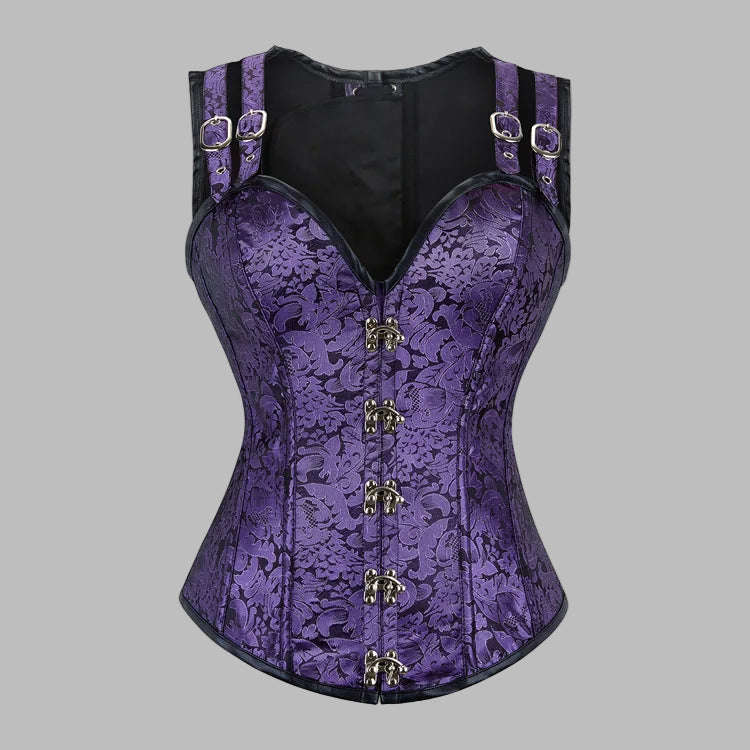 Steampunk Korsett med Metallspännen och Axelband Lila