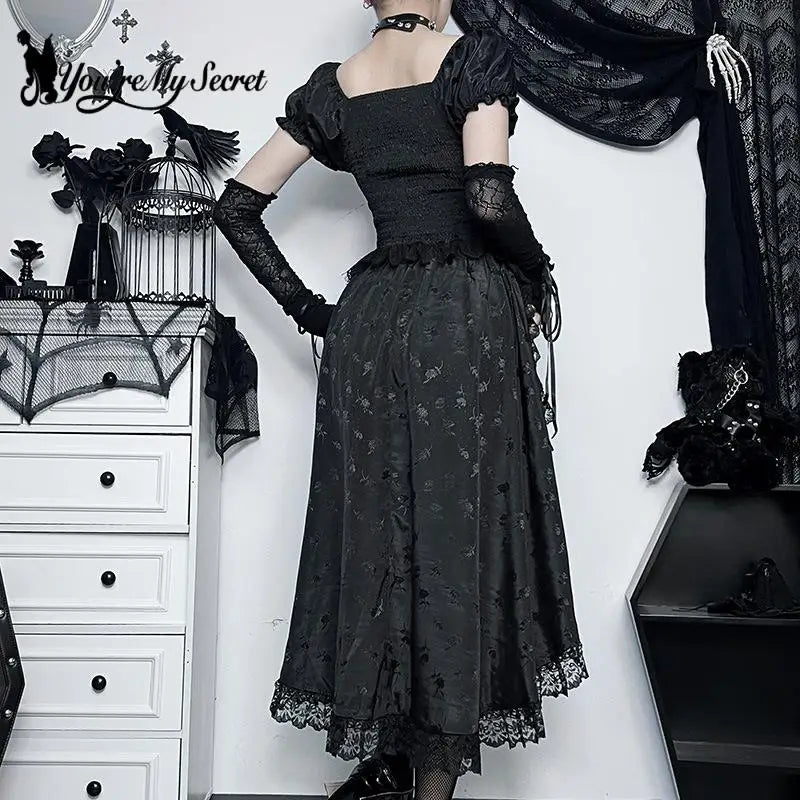 Svart asymmetrisk gotisk punkklänning med spets