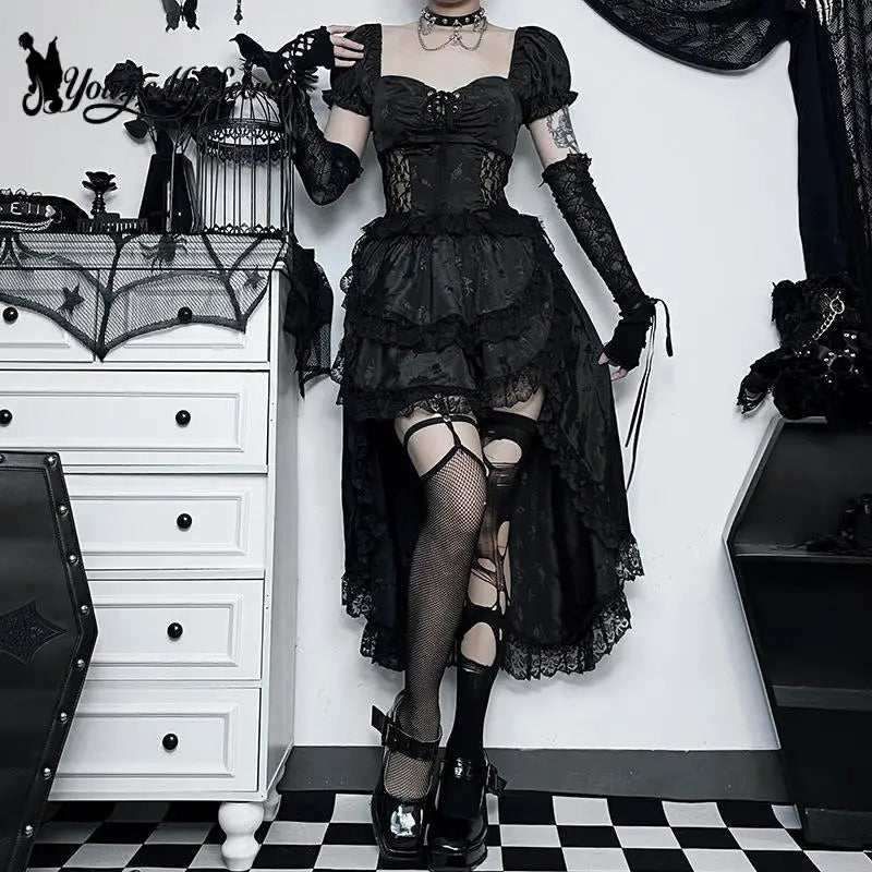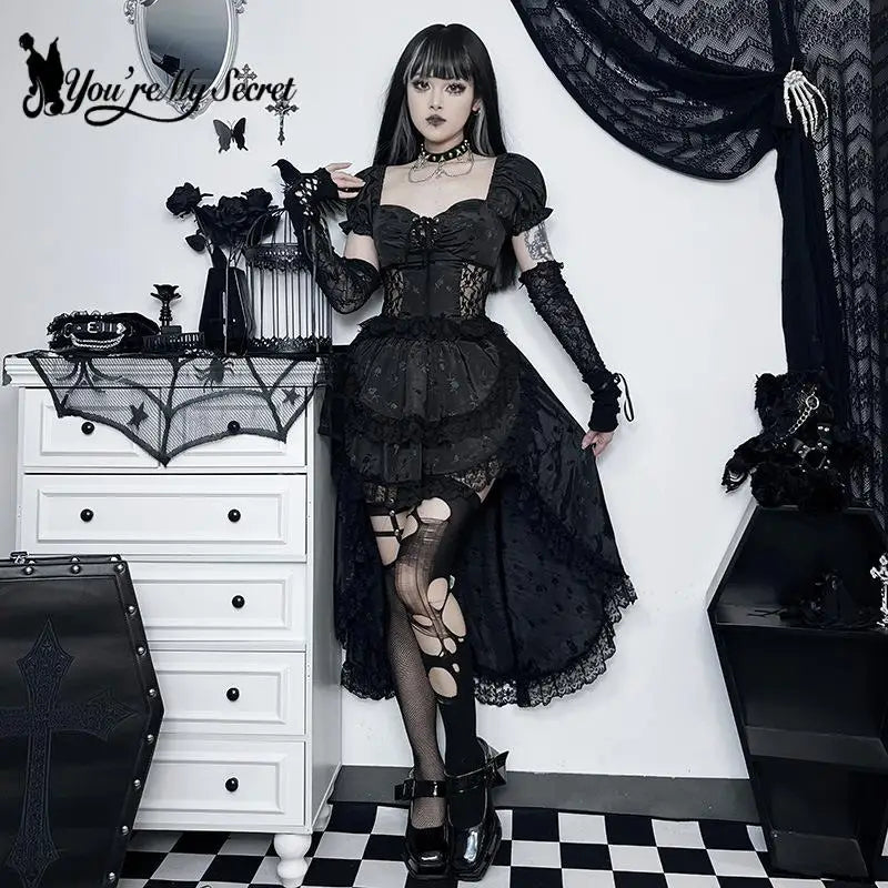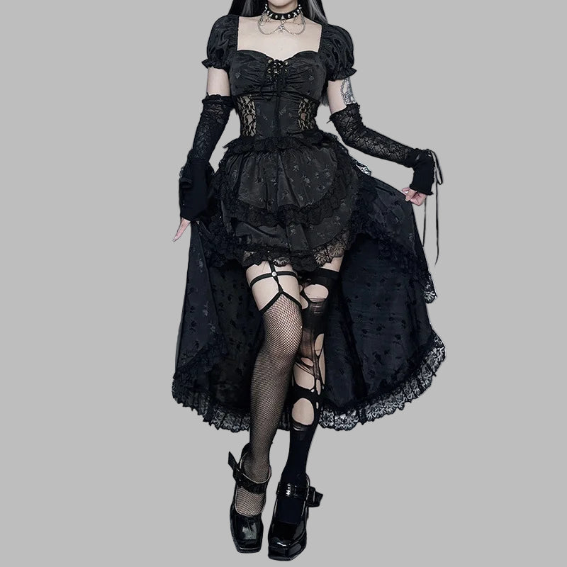Svart Asymmetrisk Punk Gotisk Spetsklänning