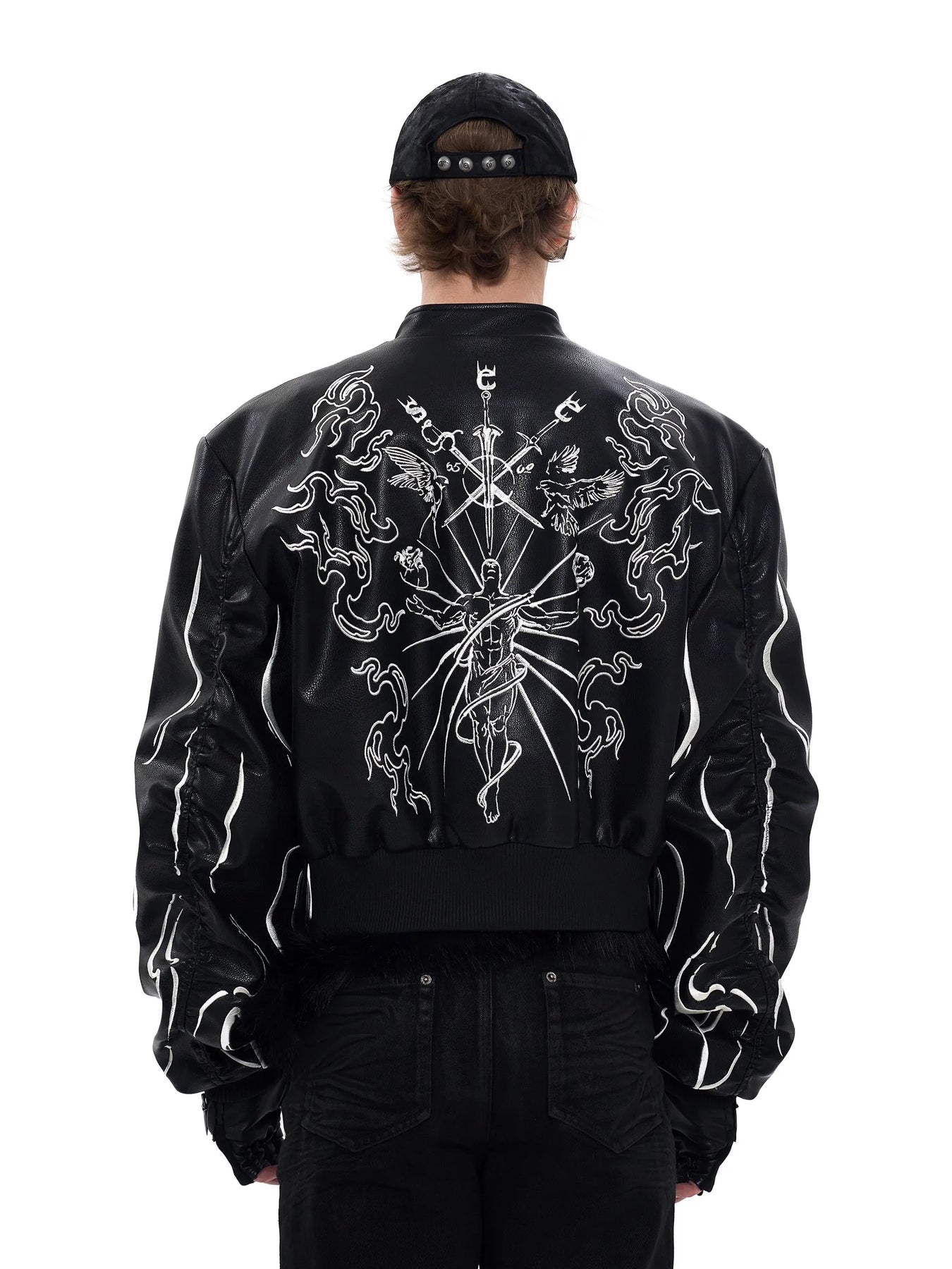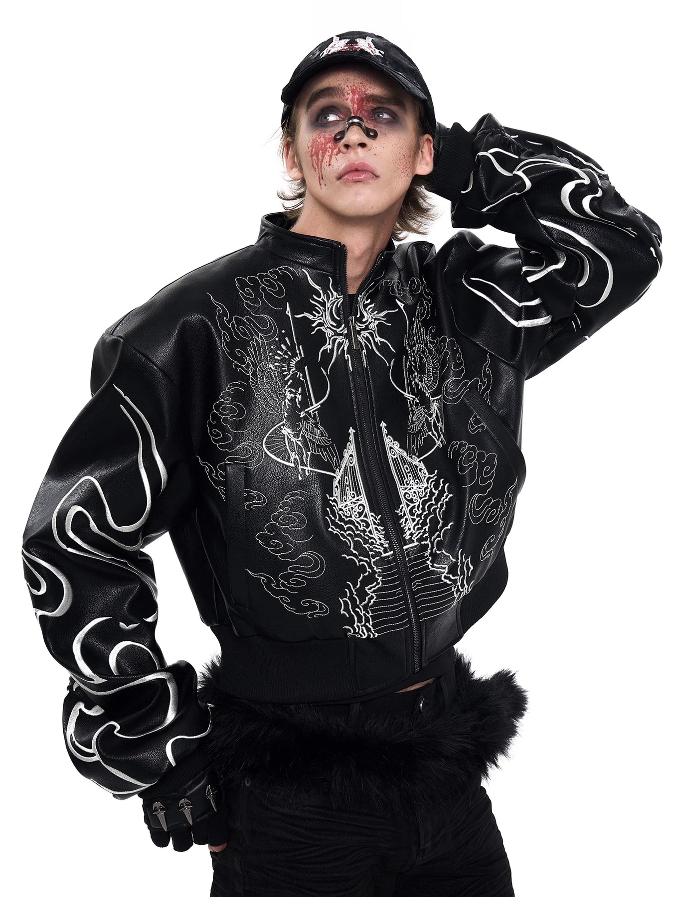 Svart goth metal bomberjacka med broderi av änglar och himmel