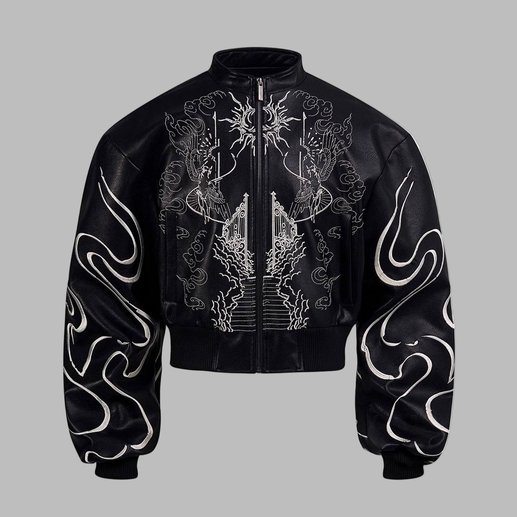 Svart Goth Metal Bomberjacka med Broderi av Änglar och Himmel Visa alternativ