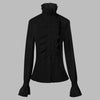 Svart Goth Rock-skjorta med hög krage och jabotdetaljer