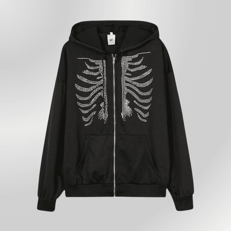 Svart gotisk hoodie med skelettmönster Visa alternativ