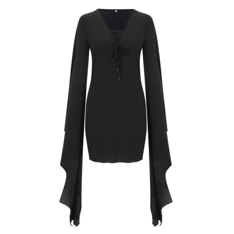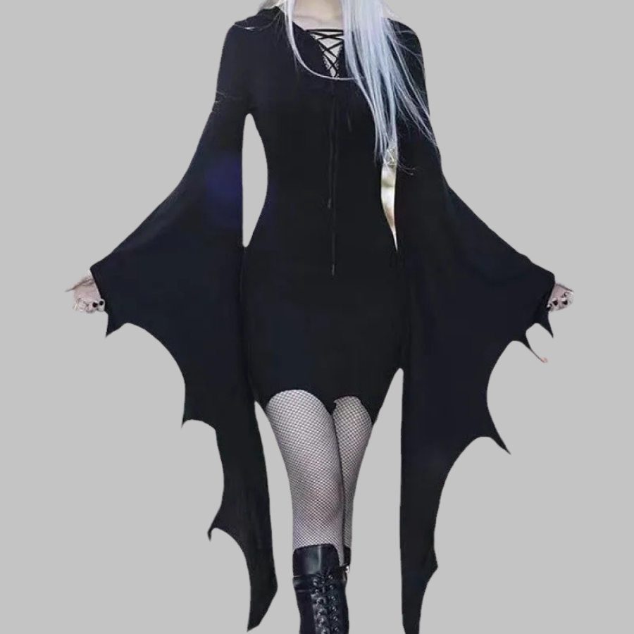 Svart gotisk klänning med fladdermusvingeärmar Visa alternativ