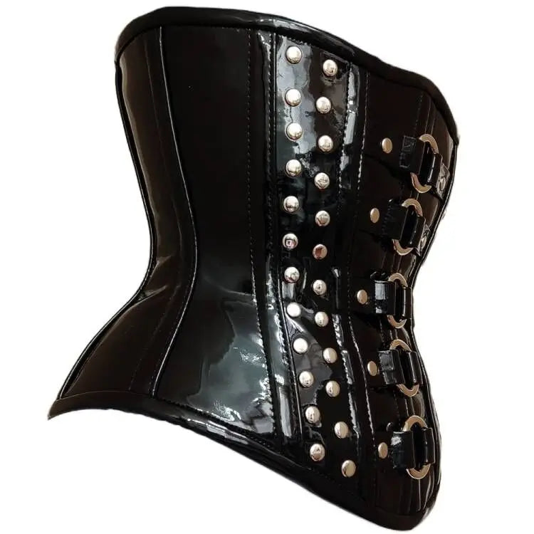 Svart Gotisk Punkkorsett med Metallspännen och Nitar 4XL
