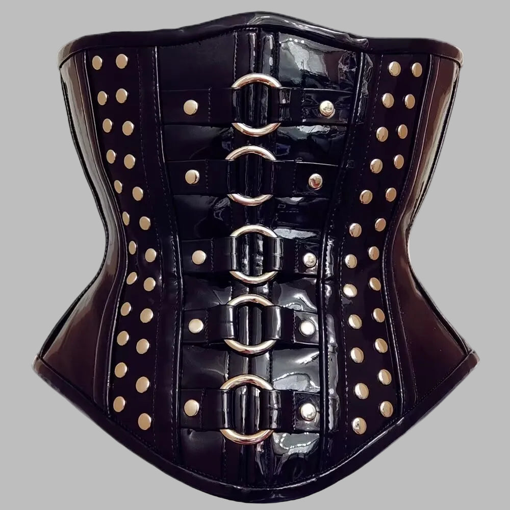 Svart gotisk punkkorsett med metallspännen och nitar Visa alternativ